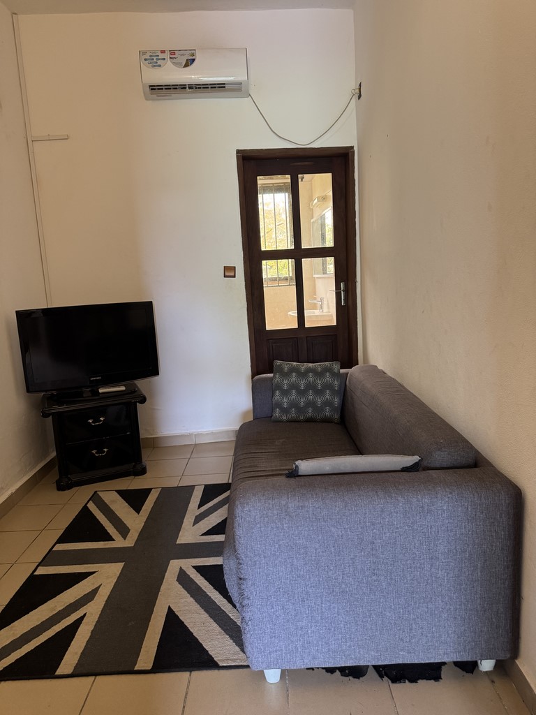 L'appartement bénéficie d’un accès direct à l'extérieur, ce qui permet de profiter du jardin. Il conviendra à ceux qui n’ont pas besoin de grands espaces ou de prestations haut de gamme, mais qui cherchent un cadre de vie simple et fonctionnel.